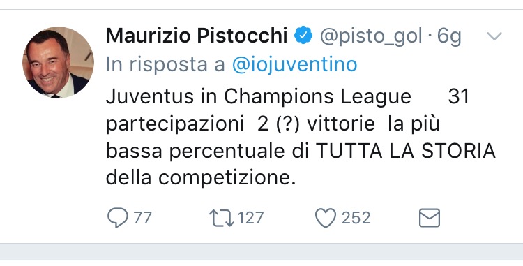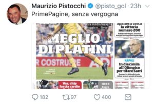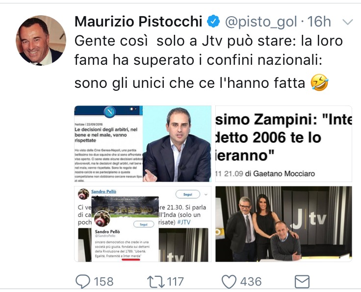 Senza freni e senza misura . Maurizio Pistocchi , ex opinionista Mediaset ( ora in cerca di occupazione fissa e di rilievo ) , cerca in tutti modi di trovare spazio nel paronama giornalistico sportivo . Una fissazione che nasconde una malattia ? Giudicate voi …
