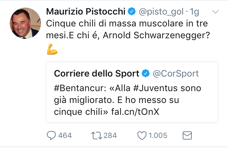 Commentando alcune parole di Rodrigo Betancur , talento bianconer apprezzato in tutto il mondo , Pistocchi si concede un tweet al veleno che molti tifosi juventini non gradiranno.