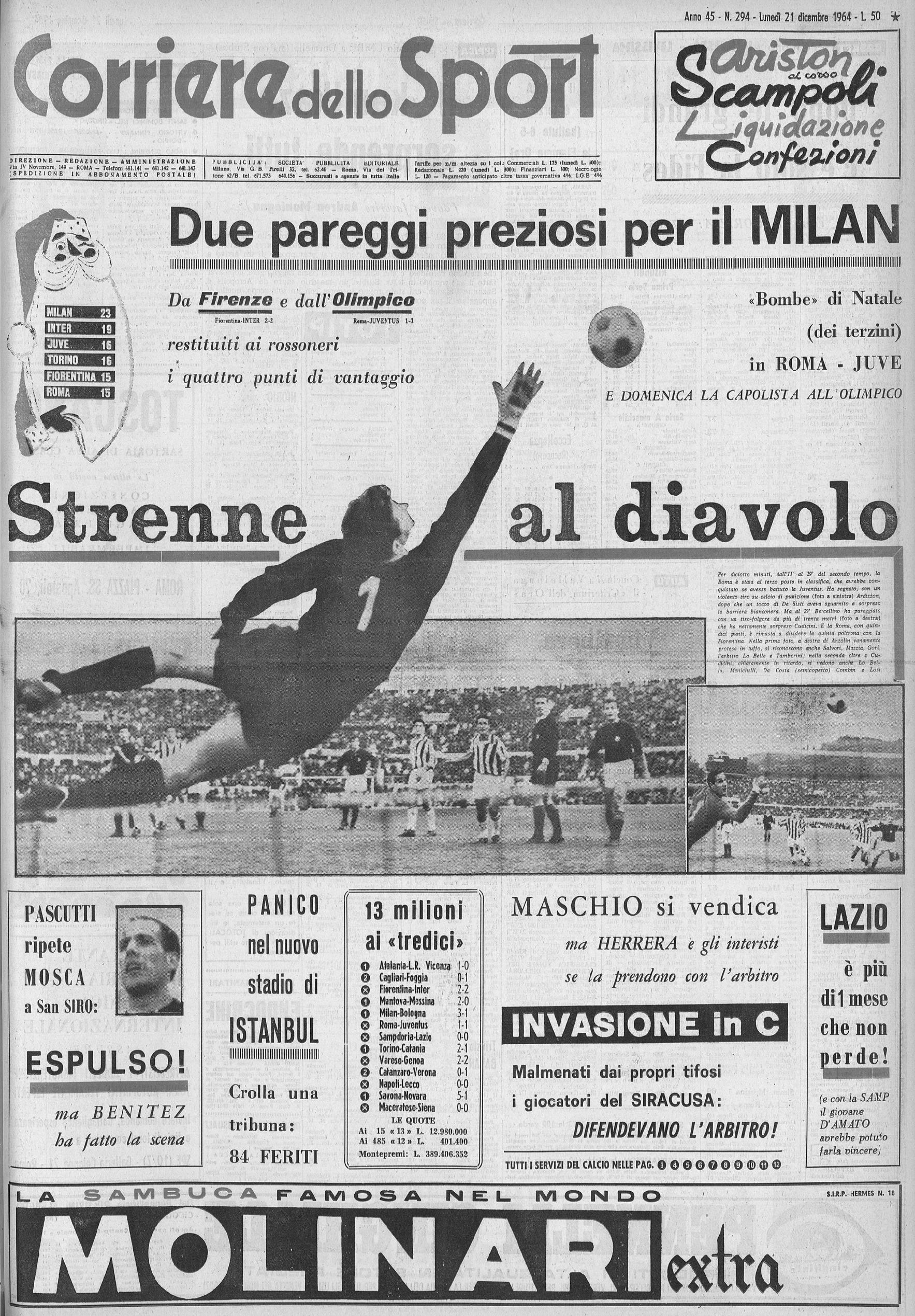 Era il 13 dicembre del 1964. Ero poco più che un bambino e all’epoca vivevo con mio Zio, un milanista sfegatato e tifosissimo di Giovanni Lodetti. Ogni volta che giocava il Milan mi portava con sé a sansiro e avevo il mio cuscinetto con l’elastico e con sopra lo stemma del Milan. Avevo 8 anni e capivo davvero nulla di quei 22 che correvano dietro ad un pallone, ma per non fare arrabbiare mio zio quando il Milan segnava facevo “goal” ma sinceramente non ne capivo il motivo di tutto quello che stava accadendo. Un giorno mi disse che mi avrebbe portato a vedere il Milan in trasferta, la mia prima trasferta e fu proprio a Torino. Era il 13 dicembre del 1964. Un Juventus Milan